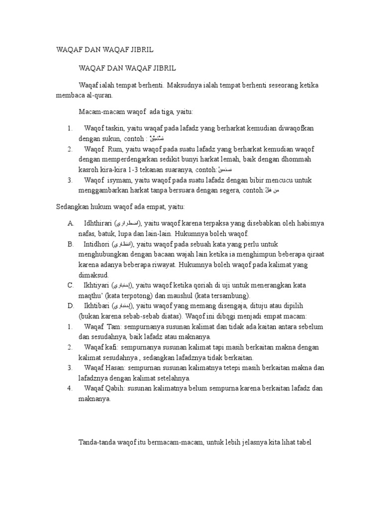 ص Waqafwaqafberhentikarena waqaf berikutnyaMurokh-khosh boleh terlalu jauh terus lebih utama 6. Ketika bertemu dengan waqaf kafi kita boleh memilih antara menghentika atau melanjutkan bacaan namun menghentikan lebih utama. Waqaf jaiz artinya boleh berhenti waqaf atau meneruskan bacaan waal.