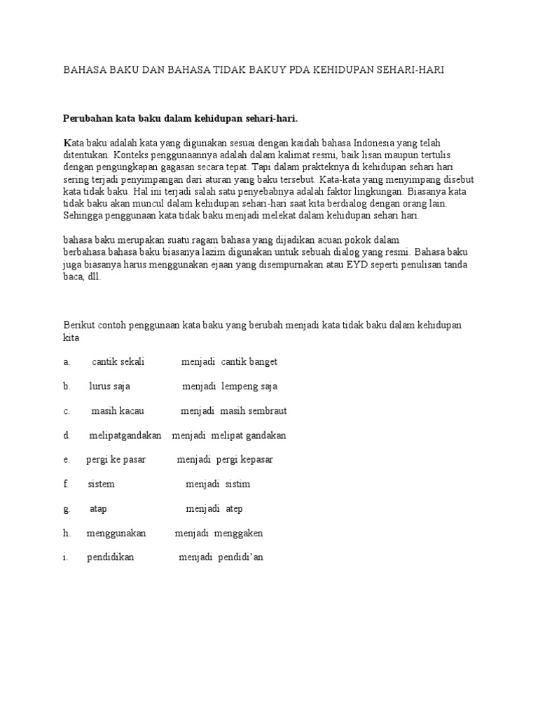 Daftar Contoh Kata Baku Dan Tidak Baku Lengkap