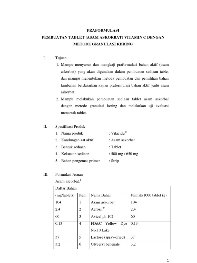 Praformulasi Tablet Vit C Granulasi Kering