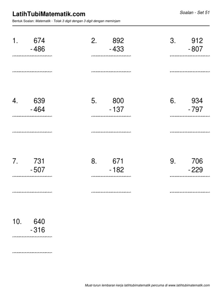 Tolak 3 Digit Dengan 3 Digit Dengan Meminjam Set 51